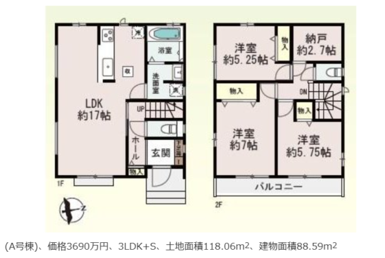 3LDK+S(納戸)~4LDK